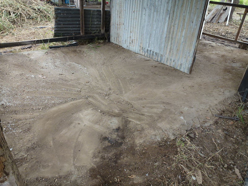 The electrician is coming today to make sure we are safe with electricity. With cut wires hanging where someone has cut off the lights and stolen we don't feel very safe. We also have exposed wires where there would have been a pump on the tank. Here they have cut of the entire switch and of course the pump is stolen as well. So the poor guy doesn't get bogged to mid calf which we are in our gum boots Jenelle has laid down old sheets of corrugated iron to walk on. I wonder what he will think of that. At least he can get to the power pole which Ergon hasn't for many years but still kept on charging us a set amount for the electricity.